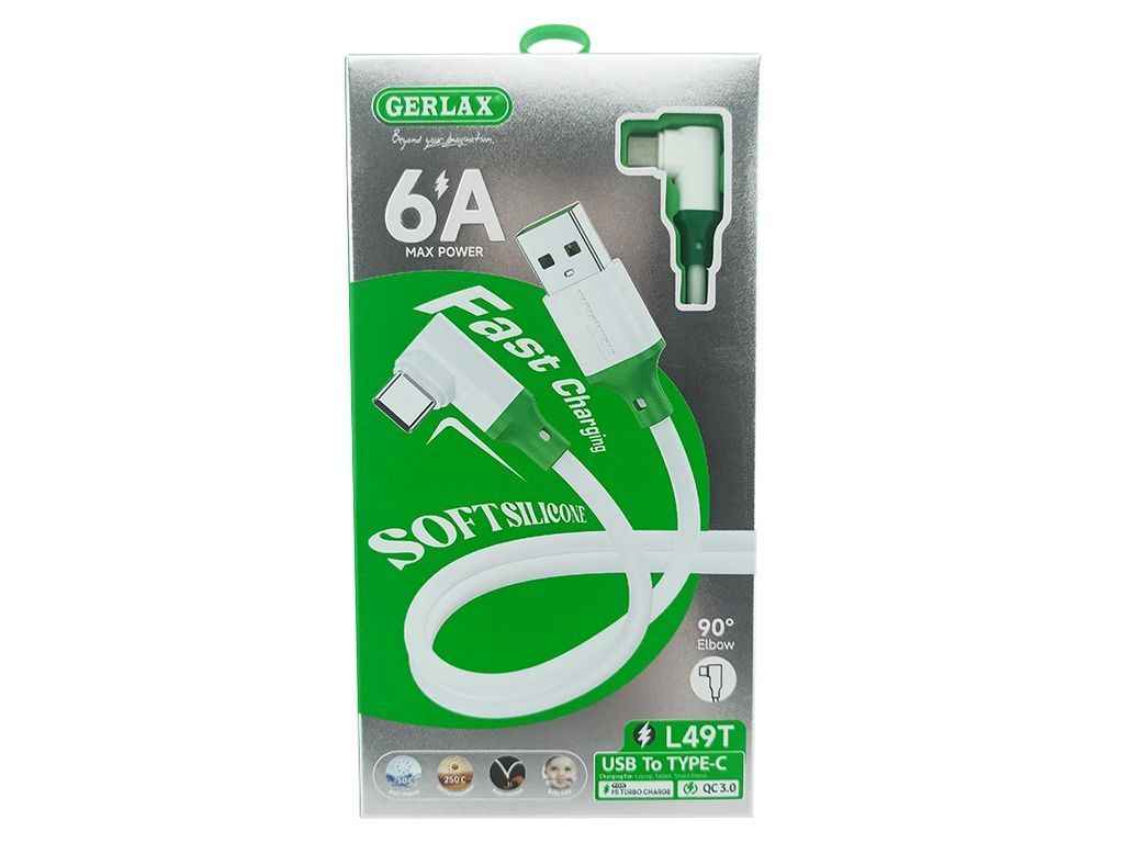 Кабель USB - Type -C L49T 6A/QC3.0 кутовий білий 1м ТМ GERLAX