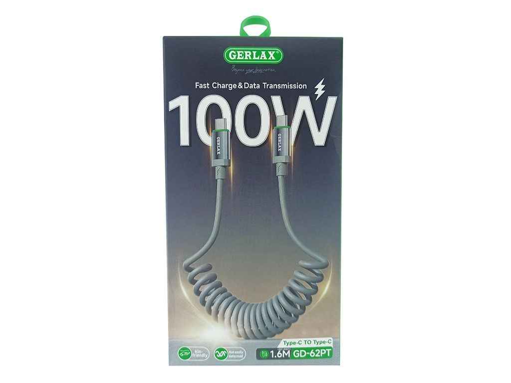 Кабель Type-C - Type-C GD-62PT 9А/100W/QC3.0 пружинка сірий 1.6м ТМ GERLAX
