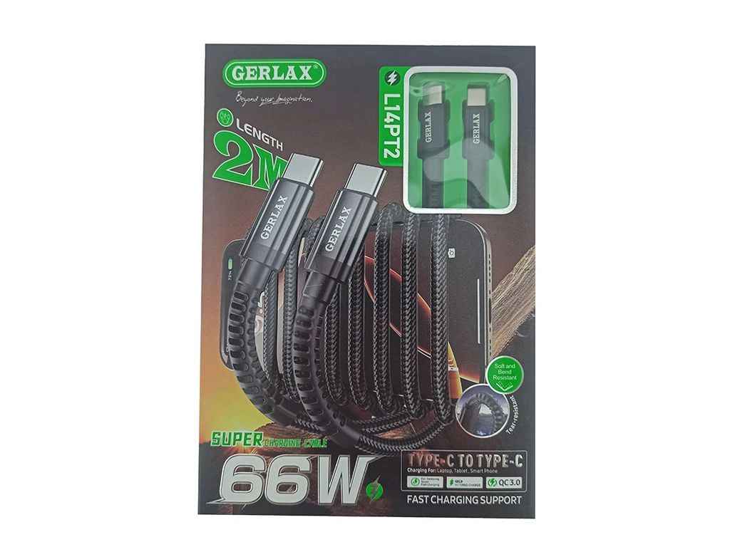 Кабель Type-C - Type-C L14PT2 3А/66W/QC3.0 нейлоновий чорний 2м ТМ GERLAX
