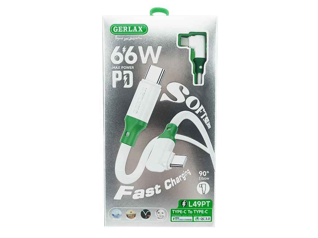 Кабель Type-C - Type-C L49PT 66W/QC3.0 кутовий білий 1м ТМ GERLAX