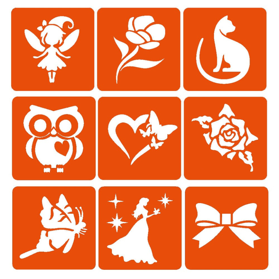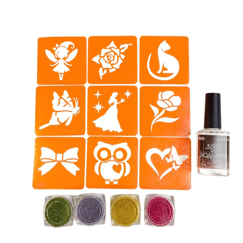 Набір для біо-тату "Для дівчаток #3 - гліттер" set-girls-3-glitter 9 трафаретів
