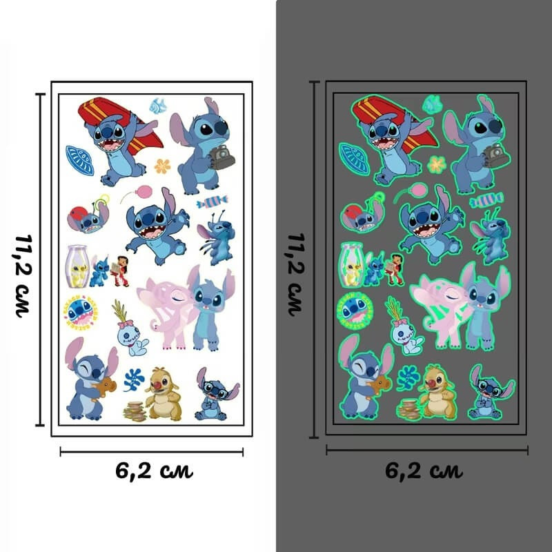 Набір тимчасових татуювань "Стіч" stich-glow-tattoo-10 світяться, 10 аркушів 12х7 см