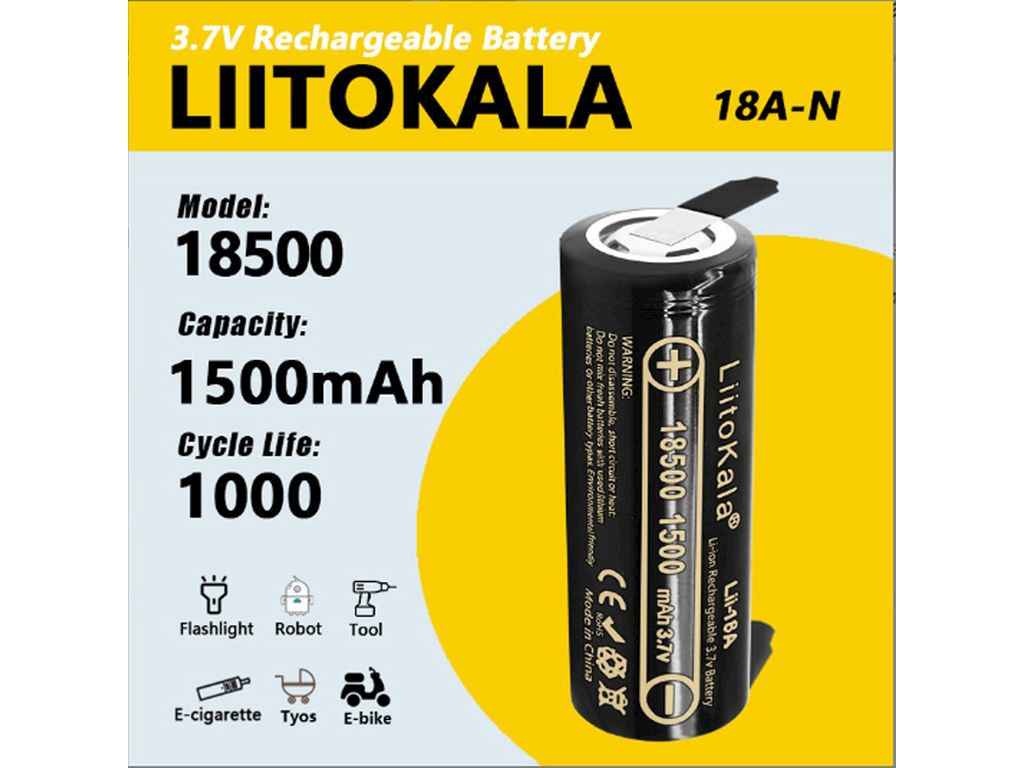 Аккумулятор 18500, LiitoKala Lii-18A-N, 1500mah, з контактами під пайку, Оригінал