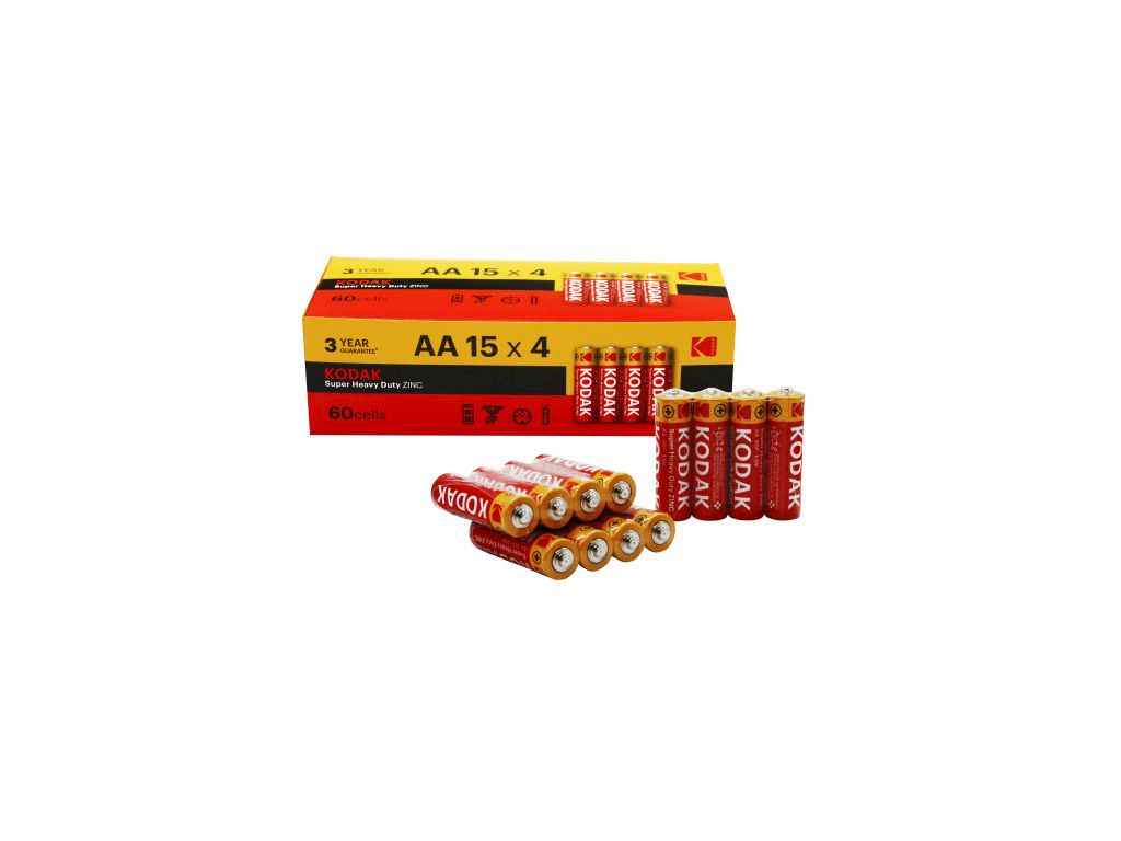 Батарейки R06 Kodak Super Heavy Duty ZINC забезпечують стабільну та надійну роботу для пристроїв з низьким та середнім енергоспоживанням. Кожна спайка містить 4 елементи формату AA (1.5V), упаковано по 60 штук у коробку. Виготовлені на цинковій основі, не містять ртуті та кадмію. Підходять для пультів, годинників, ліхтариків, дитячих іграшок та іншої техніки.