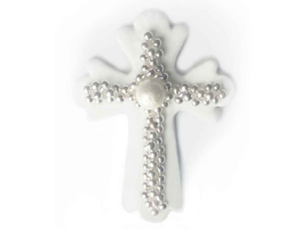 Хрестик срібними кульками 30х45мм білий ТМУКРАСА