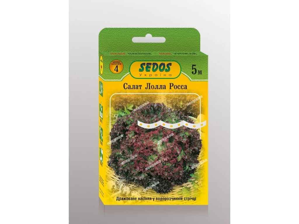 Дражоване насіння у водорозчинній страчці.Популярний салат Лолла Росса додасть ефектності будь-якій страві, він привертає увагу своїм фіолетовим забарвленням і яскравим пряним смаком. Його додають до мясних або рибних страв і в усі види свіжих салатів. Використовують як прикрасу і як основу. У його листі міститься безліч корисних вітамінів, корисних і дітям, і дорослим.