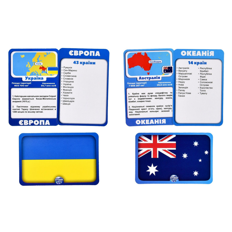 Кожна партія перетворюється на пізнавальну пригоду, де знання здобуваються через гру, азарт і живі емоції. Діти й дорослі тренують пам’ять, увагу та мислення, розширюють кругозір і відкривають для себе нові країни з новим захопленням.
