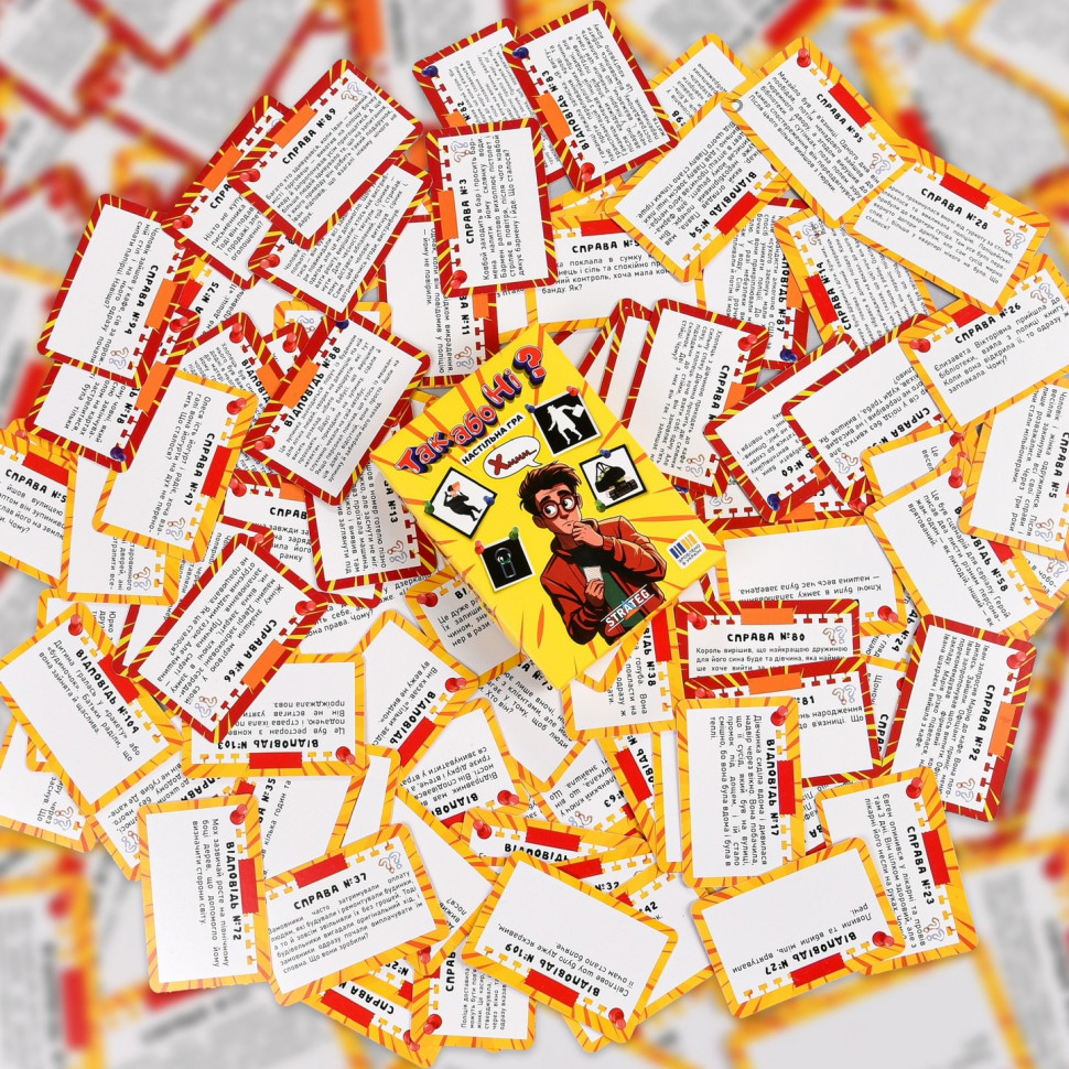 "Так або ні?" — це захоплива детективна пригода, в якій ви станете командою справжніх детективів. У коробці низка загадкових історій, які на перший погляд здаються абсурдними або неможливими. Ваше завдання: крок за кроком розплутати клубок подій і дізнатися, що сталося насправді.