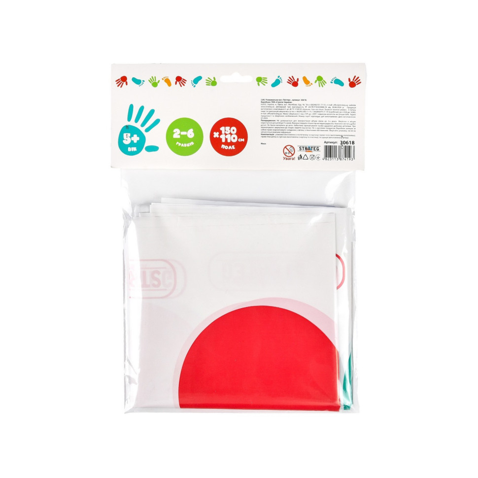 Комплектація: упаковка (виготовлена з поліетилену та картону), ігрове поле (виготовлено з поліетилену), ігрова планшетка зі стрілкою розміром 14х14 см (виготовлена з картону та пластику), інструкція (виготовлена з паперу).