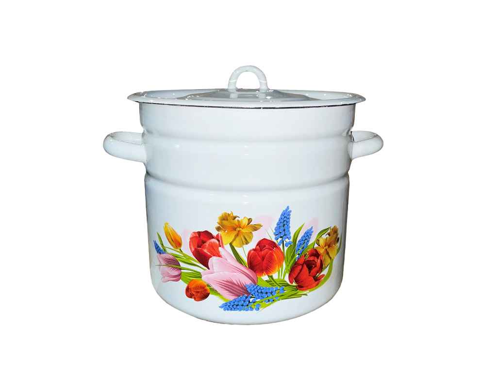 Каструля ем. 12л /2 циліндрична з полою ручкою на кришці Весняний букет (біла) I16241/2 ТМ IDILIA