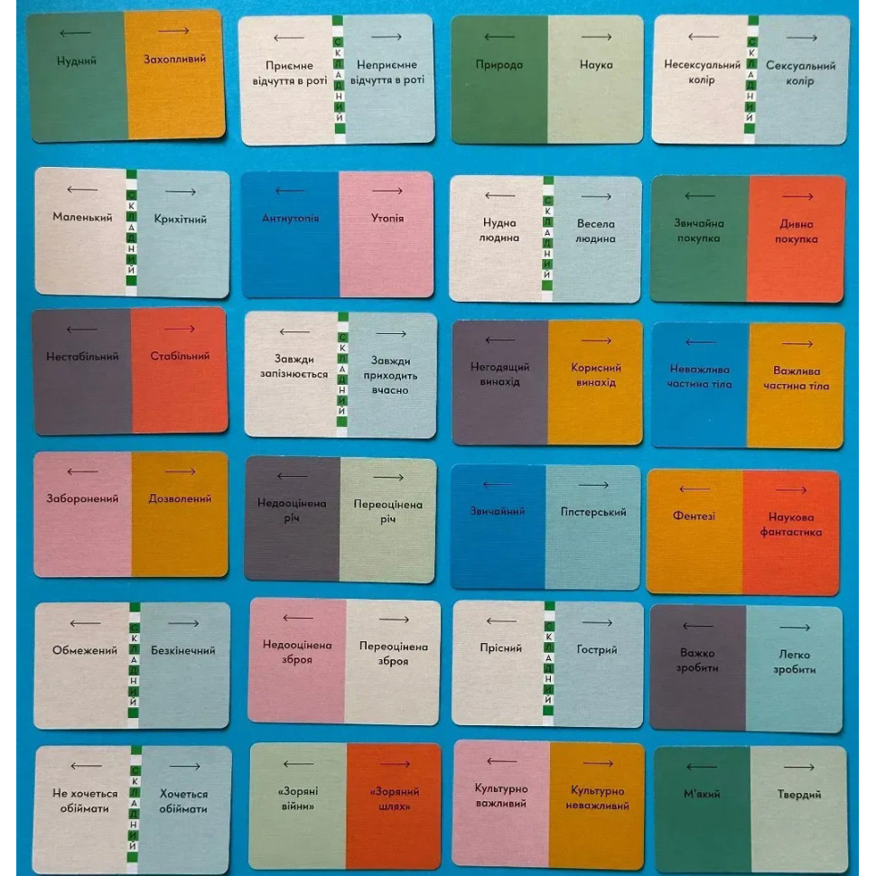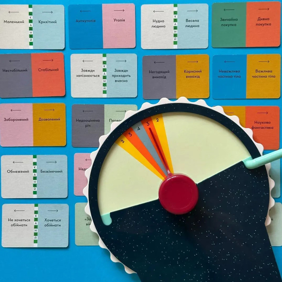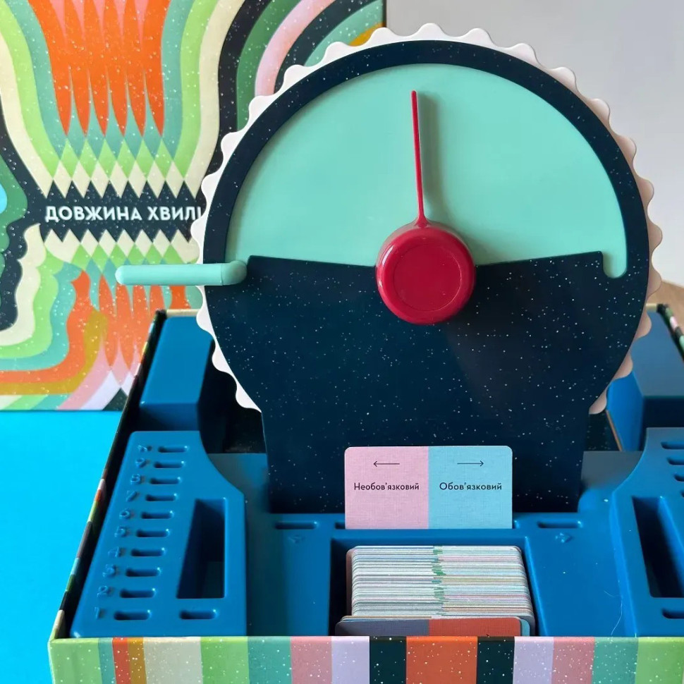 Довжина Хвилі (Wavelength) - захоплююча і весела гра, яка підійде як для цікавого вечора з кількома друзями, так и для великих компаній. Учасникам випаде шанс на деякий час перетворитися на телепатів і спробувати прочитати думки один одного. Приготуйтеся до неймовірної подорожі, в процесі якої вам доведеться знайти відповіді на безліч питань про життя і всесвіт.Гра має прості правила, які легко освоїти протягом короткого періоду часу. Початківцям у настільних іграх допоможе зручний органайзер, який зробить підготовку до майбутнього ігрового процесу неймовірно швидкою.Час читати думкиУ комплекті з грою є все необхідне для захоплюючого протистояння двох команд, в тому числі, це унікальний механізм для читання думок і понад 120 двосторонніх карток, а спеціальні маркери допоможуть під час підрахунку очок. Брати участь у партії можуть від 2 до 12 осіб і навіть більше, але навіть мінімальна кількість гравців обіцяє не менш захоплююче протистояння.На початку партії учасникам необхідно розділитись на дві команди, які ходитимуть по черзі. Кожного раунду один із гравців у команді виступатиме в ролі телепата. Тільки йому відомо, де на циферблаті розташоване спеціальна риска, а від решти учасників циферблат заховано за ширмою. Їхнє головне завдання - максимально наблизити стрілку на циферблаті до потрібного положення.Ігровий процес поділено на кілька основних фаз:Фаза телепат. Учасник команди бере картку і для всіх читає написане на ній. Після цього він надає членам своєї команди підказку щодо того, де розташований центр кольорової зони. На картках зазвичай є два протилежні слова, наприклад, "Холодне" і "Гаряче". Телепат може використовувати слово "Кава", тому що її найчастіше п’ють теплою.Фаза команди. На цьому етапі учасники обговорюють отриману підказку і разом приймають рішення, куди перемістити стрілку. При цьому цифри чи відсотки називати не можна, а посунути стрілку має право будь-який учасник команди.Фаза ліворуч/праворуч. Супротивники під час ходу активної команди теж намагаються відгадати розташування потрібної кольорової зони. Маркер вгадування розміщується ліворуч або праворуч від картки.Нехай переможуть найсильніші!Момент відкриття ширми є найбільш емоційним: він супроводжується тріумфуючими криками, розчарованими зітханнями або сміхом. Залежно від розташування стрілки, командам нараховуються очки. Активні гравці можуть заробити від 2 до 4 очок, супротивники - 1 очко, якщо центр кольорової зони опинився на потрібній стороні від стрілки.Боротьба триває допоки одна з команд не набере 10 і більше очок. Якщо ж раптом стається нічия, то гравці одержують ще по одному ходу. На кожному етапі телепат змінюється, тому у кожного буде можливість оцінити свої екстрасенсорні здібності. Величезна кількість карток не дозволяє грі набриднути навіть після безлічі раундів.Хоча сама гра неймовірно проста, вона створює простір для гарячих суперечок, бурхливих обговорень, безлічі асоціацій і навіть магії. Механіка "Колесо" додає ігровому процесу особливої атмосфери, дозволяючи весело і атмосферно провести час у приємній компанії.Склад гри:126 двосторонніх карток2 маркери підрахунку очок1 унікальний механізм читання думок1 маркер вгадування неактивної командиПравила гри.
