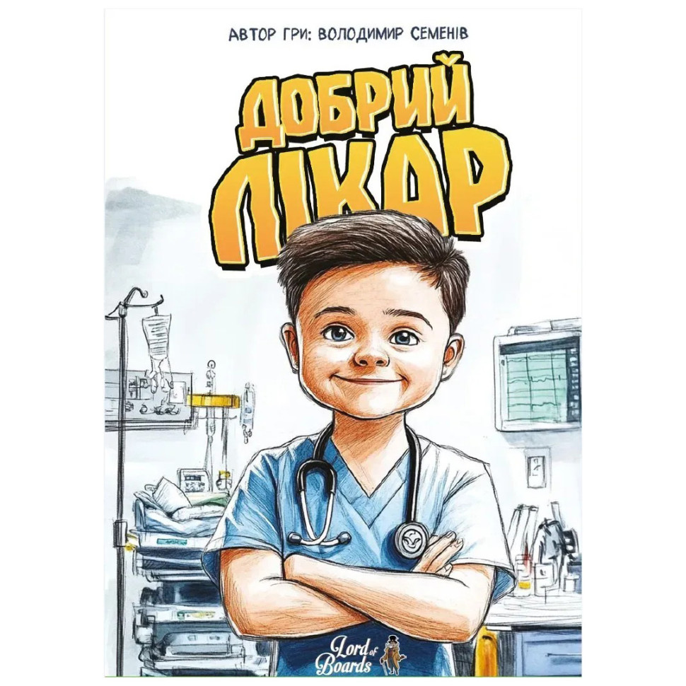 Ніхто не любить хворіти, це правда. Але якщо вам допомагає видужати справді чудовий лікар, то і хвороба пройде легше та швидше. А у настілочці Добрий лікар від 2 до 4 гравців мають змогу стати такими лікарями, аби допомогти якомога більшій кількості пацієнтів! Уявіть лише - ви зможете перетворитися на знайомого вам лікаря, так-так, у грі є картки лікарів, що мають своїх живих "близнюків". Тож не дивуйтесь, побачивши знайомі обличчя лікарів на картках.У грі використовуватиметься лише одна колода карт, на одній її стороні зображені пацієнти, за якими потрібен догляд, а на іншій доступні дії. У свій хід гравці братимуть із загального ряду з 5 карт дій: або всі карти з однаковою дією, або всі карти однакового кольору (чи один джокер, занадто вже потужну дію він має!), після чого можна займатися лікуванням.А лікувати, повірте, є кого, адже взявши 3 або більше карт дій, або ж отримавши карту з терміновим викликом, ви будете отримувати також пацієнта, якому потрібна ваша допомога!Кожний з пацієнтів має свої потреби: комусь необхідно дати пігулок, іншому мікстуру або поставити укол (без нервів - тестувальники гри підтвердили, що це абсолютно безболісний укол). Не обовʼязково виконати всі дії за один хід, адже буває, що лікування - достатньо довгий процес.За кожного вилікуваного пацієнта ви отримуватимете переможні очки. Щойно таких пацієнтів стане 5, то гра завершується і гравці підраховують, хто з лікарів був найефективнішим у своїй праці! Ба, треба бути пильним, адже пацієнти, яких вилікувати не встигли, принесуть гравцям відʼємні очки.Добрий лікар - це достатньо проста гра, в якій необхідно планувати свої дії, аби бути максимально ефективним. Та, разом із захоплюючим ігроладом, вона може показати молодшим гравцям, що лікуватися зовсім не страшно, адже лікарі завжди роблять усе можливе задля одужання пацієнтів!Склад гри:60 двосторонніх карт дій/пацієнтів4 карти-підказкиПравила.
