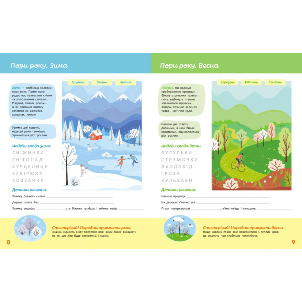 Книжки серії містять велику кількість цікавої та корисної інформації і завдань з курсу "Я досліджую світ" для учнів початкової школи. Дитина матиме можливість згадати вивчений протягом року матеріал і потренуватися у виконанні завдань у вільний час. Книжки містять завдання з формування предметних компетентностей молодших школярів; розширяють їхній кругозір і розвивають когнітивні здібності.Клас: 1-2Вони стануть у пригоді не лише учням, а й учителям початкових класів і дбайливим батькам.Видання можна використовувати під час навчання дітей з особливими освітніми потребами.