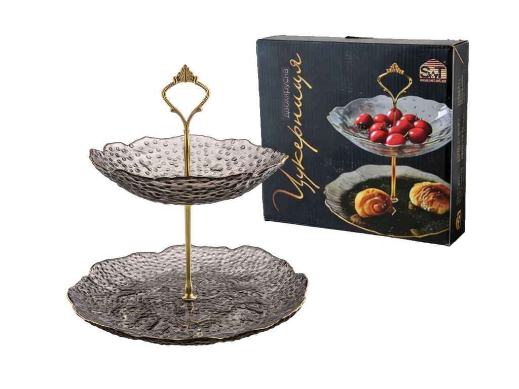 Цукерниця 2х ярусна Агат золотий кант 30088-2 ТМ SNT