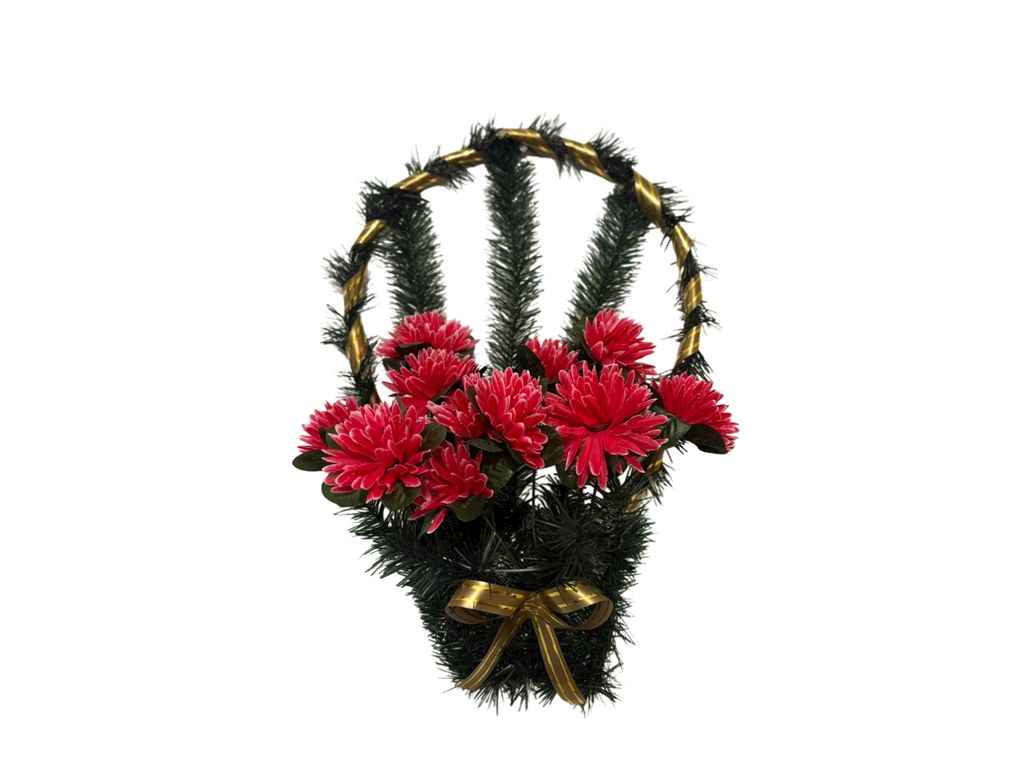 Поминальна корзина «Хризантема» — це витончена композиція, що поєднує стриманість, гідність та глибоку символіку пам’яті. Виріб оформлений у класичному стилі з декоративною хвойною основою та композицією хризантем, які символізують повагу, любов і світлу пам’ять. Квіти гармонійно поєднані з зеленим листям, а декоративна стрічка додає завершеності та акуратного вигляду. Композиція підходить для покладання на могилу, участі в похоронній церемонії або в поминальні дні.