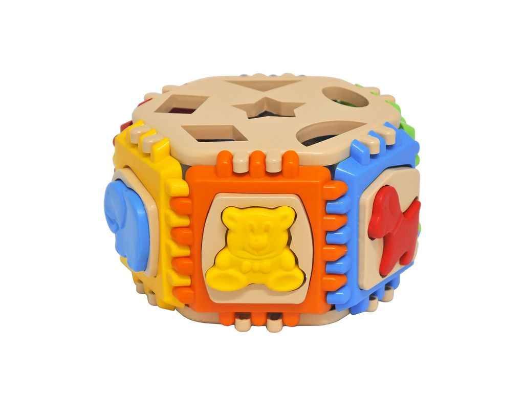 Щоб скласти шестигранник, дитині потрібно зєднати його стінки, які являють собою 6 різнокольорових елементів. Крім того, в кожній стінці куба є фігурні отвори, до яких потрібно підібрати фігурки тварин відповідної форми. Підбираючи фігурки під отвори, дитина вивчає форми і кольори, вчиться порівнювати і аналізувати, розвиває память і логіку. З елементів куба можна також складати інші конструкції. Створення конструкцій дуже корисно для розвитку творчого потенціалу дитини.