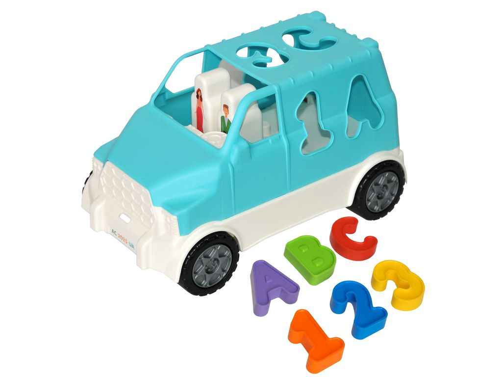 Кабіна авто – це сортер для формочок у вигляді цифр 1, 2, 3 та букв A, B, C. Обємні цифри та букви різного кольору дозволять дитині вивчити також і кольори.
