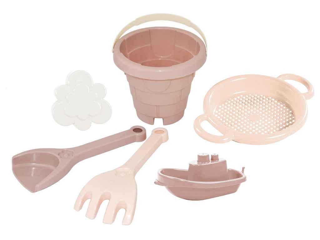 Набір для піску «Вежа» - ідеальний вибір для ігор у піску і воді. До набору входить 6 елементів: лопатка, грабельки, 1 формочка, кораблик, ситечко і відерце у вигляді вежі замку. Ігри набором розвивають уяву і творче мислення, рухову активність дітей, сприяють покращенню зорово-рухової координації, а також спонукає до комунікації з іншими дітьми. Іграшки виготовлені в трендових кольорах 2021 року.