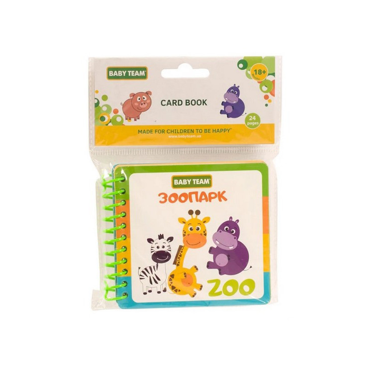 Яскрава пізнавальна книжечка ознайомить Вашого малюка з цікавим та різноманітним світом тварин. Книжечка виконана з цупкого матеріалу, має 24 сторінки, що з'єднані між собою пружинкою. Розвиває концентрацію уваги, дрібну моторику, тактильні відчуття, координацію рухів та колірне сприйняття. Іграшки Baby team виготовлені ​​з високоякісних і безпечних матеріалів, а також не містять шкідливих речовин і Бісфенол А.Матеріал: папір, поліпропілен.Рекомендований вік: від 18 місяців.
