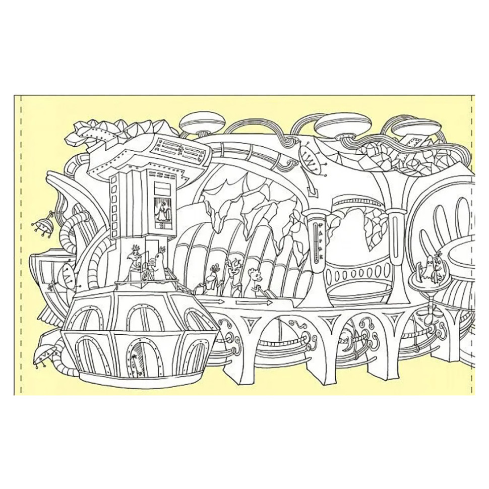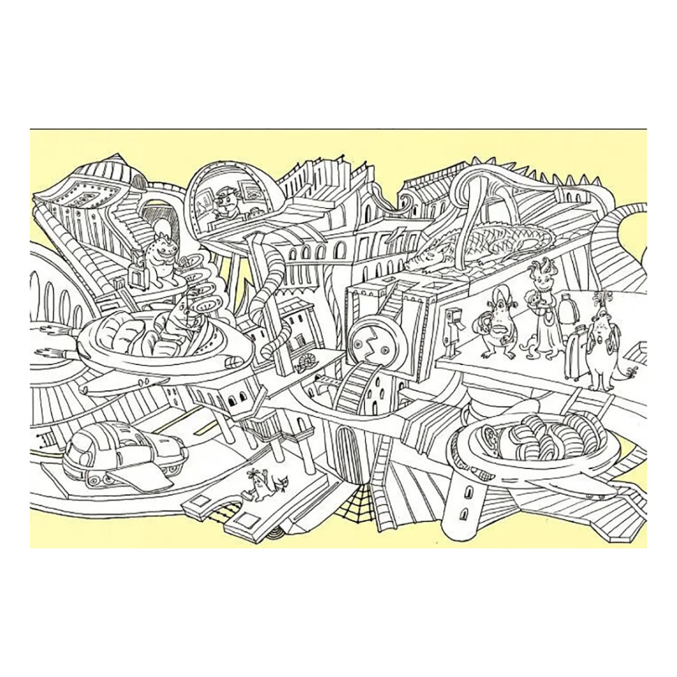 Розмальовки серії «Довжеле-е-е-езна подорож» завдовжки 4,5 метри! Незвична форма сприяє тому, щоб з головою зануритися у творчий процес: від розфарбовування химерних будівель та дивакуватих мешканців не доведеться відволікатися на перегортання сторінок. Ретельно промальовані, деталізовані пейзажі фантастичних мегаполісів не тільки пробуджують уяву, а й гарантують те, що розмальовки вистачить надовго, навіть, якщо розфарбовувати її безперервно.
