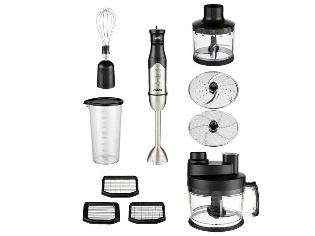 Потужність 1000 W. Плавне регулювання швидкості. Ніж Ice Crush з нержавіючої сталі з титановим покриттям. Пластиковий корпус зі знімною ногою. Нога з нержавіючої сталі. Підвісна петля. Аксесуари: чаша для подрібнення і нарізки кубиками 2 л з лезом, чаша з подрібнювачем 400 мл, насадка для нарізки кубиками 8 мм х 8 мм, насадка для нарізки кубиками 11 мм х 11мм, насадка для нарізки соломкою, мірний стакан: із кришкою 600 мл, віночок з нержавіючої сталі, терка для дерунів, диск двосторонній для нарізки та подрібнення овочів і фруктів, Гарантія - 2 роки.