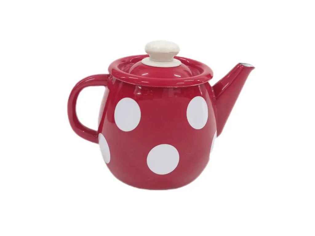 Заварник емальований 1л /4 Білий горох (червона) (I2707/4) ТМ IDILIA