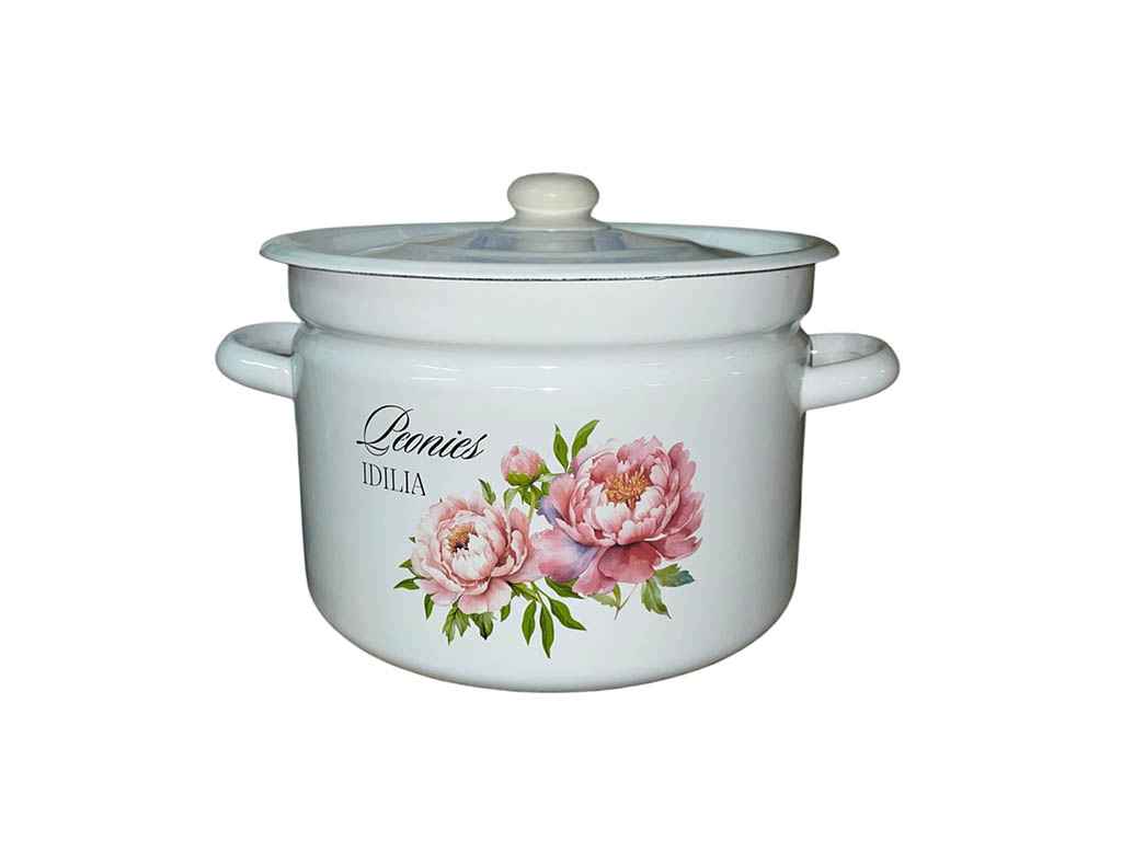 Каструля ем. 9л /2 циліндрична Півонія (біла) (I1621/2) ТМ IDILIA