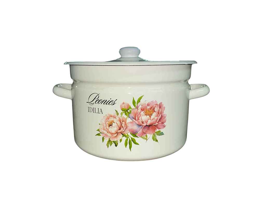 Каструля ем. 9л /2 циліндрична Півонія (молочна) (I1621/2) ТМ IDILIA