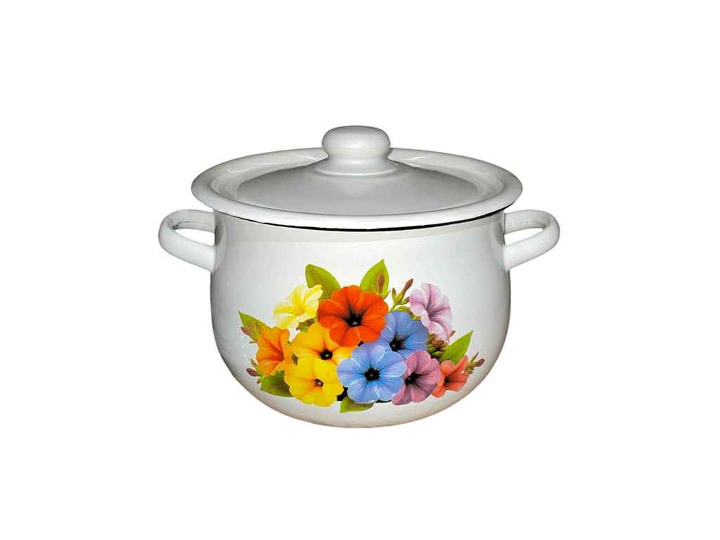 Кастрюля емальована циліндрична зі стальною емальованою кришкою без нержавіючої окантовки від ТМ IDILIA .