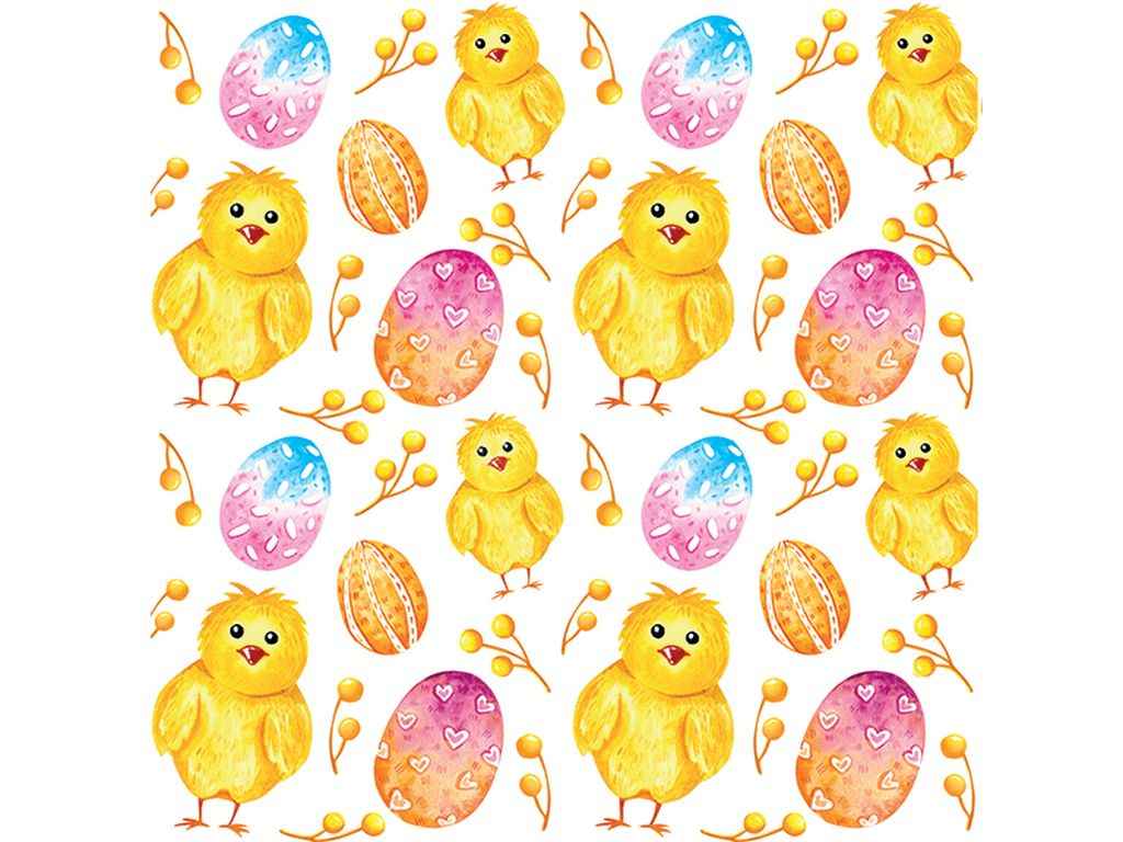 Серветки паперові великодні КУРЧАТА З ПИСАНКАМИ 33*33см 12шт/уп 2шар ТМSILKEN