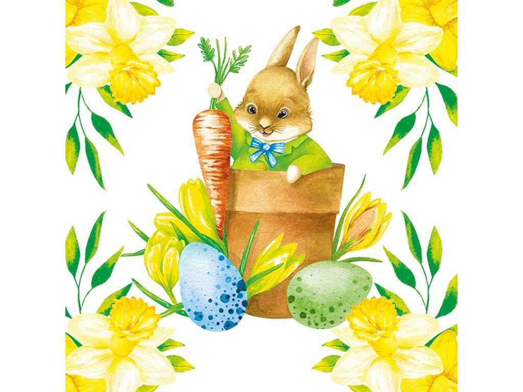 Серветки паперові великодні КРОЛИК З НАРЦИСАМИ 33*33см 12шт/уп 2шар ТМSILKEN