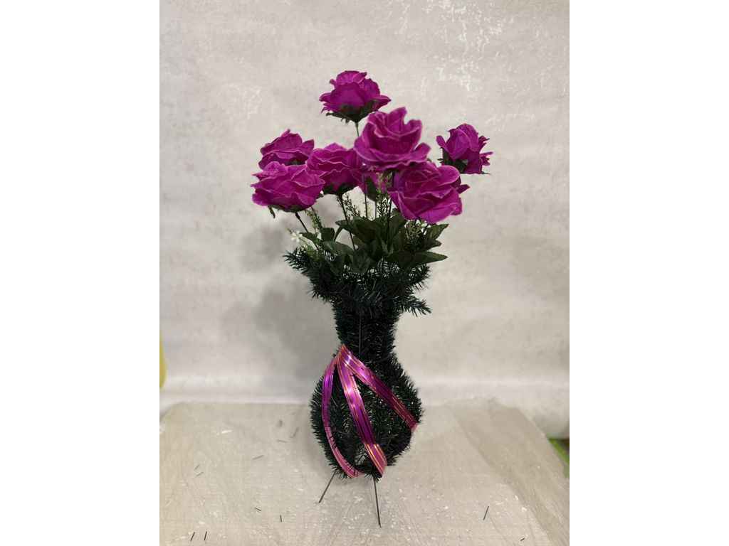 Ваза з квітами «Троянди» — це витончена композиція, що поєднує стриманість, гідність та глибоку символіку пам’яті. Виріб оформлений у класичному стилі з декоративною хвойною основою та композицією троянд, які символізують повагу, любов і світлу пам’ять. Квіти гармонійно поєднані з зеленим листям, а декоративна стрічка додає завершеності та акуратного вигляду. Композиція підходить для покладання на могилу, участі в похоронній церемонії або в поминальні дні.