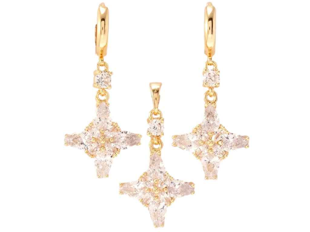 Набір пусети ML 18K Сережки Кулон Декоративні кришталеві хрестики арт.104901 ТМ XUPING