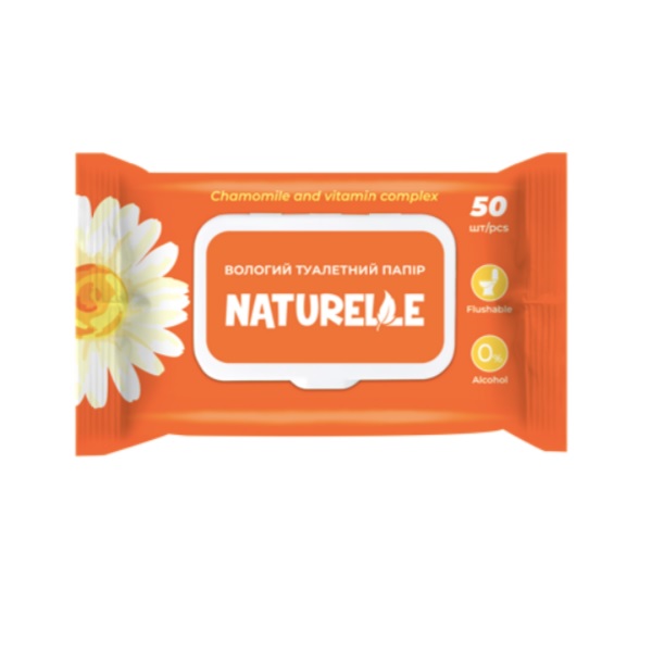 Вологий туалетний папір ромашка та комплекс вітамінів 50шт Naturelle