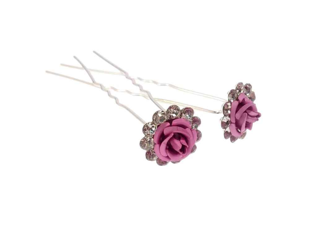 Шпильки для волосся 7,5см 20шт Рожева троянда в обрамленні страз ø 14мм арт.085768 ТМ XUPING
