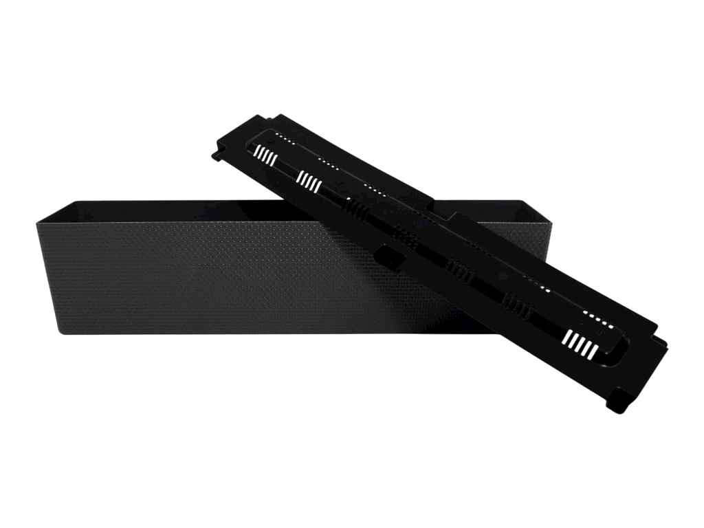 Горщик балконний Канна, прямокутної форми, має текстуру привабливого декоративного плетіння , обладнаний вставкою, яка завдяки дренажним отворам, запобігає надмірному зволоженню.