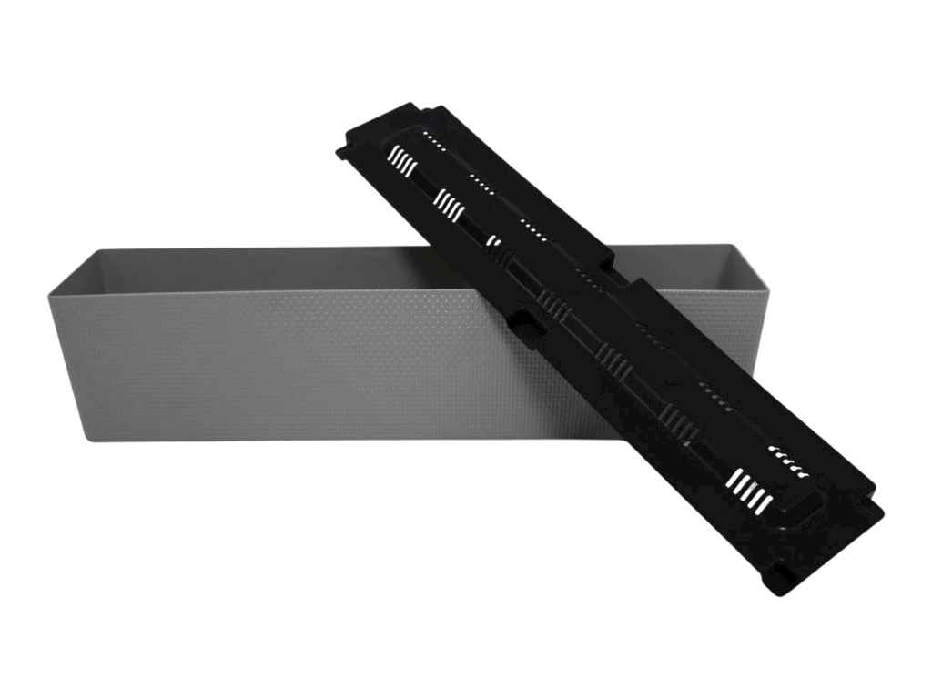 Горщик балконний Канна, прямокутної форми, має текстуру привабливого декоративного плетіння , обладнаний вставкою, яка завдяки дренажним отворам, запобігає надмірному зволоженню.