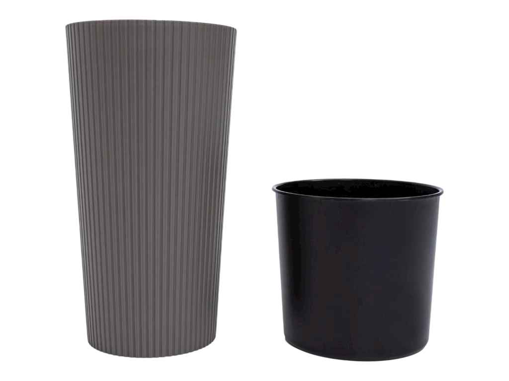 Пластиковий горщик для квітів, виконаний в сучасному стилі, поверхня шагрень. Його елегантний рифленний візерунок додає особливого шарму. Вставка зробить посадку рослини та догляд зручнішим. Горщик добре підходить для інтер’єру або вуличного використання .