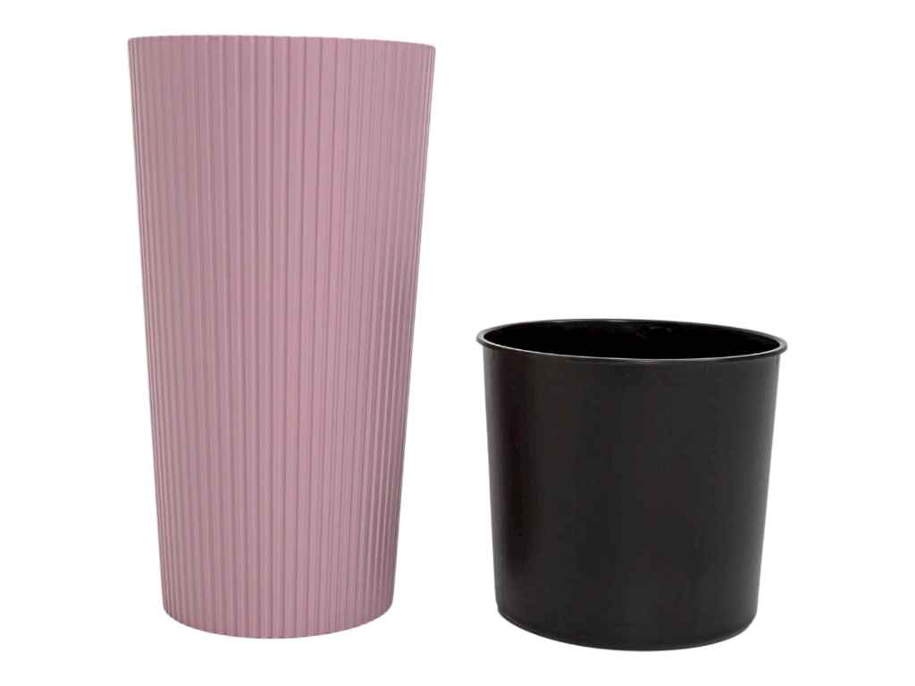 Пластиковий горщик для квітів, виконаний в сучасному стилі, поверхня шагрень. Його елегантний рифленний візерунок додає особливого шарму. Вставка зробить посадку рослини та догляд зручнішим. Горщик добре підходить для інтер’єру або вуличного використання .