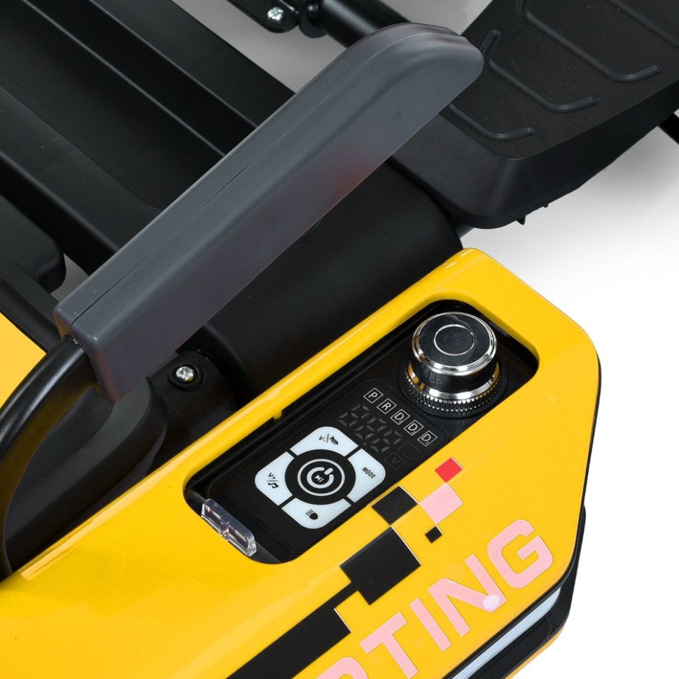 Артикул M 6148Бренд BambiТип електрокартРозміри товару довжина регул. від 127 до 149 смширина по дзеркалах/ колесам 78смвисота 57смвага 36кгвідстань від сидіння до підніжки регул. від 37 до 56смДопустиме навантаження За вагою до 150кгМотор Кількість/V/RPM 2*150W / 24V / RPM6000Батарея Кількість/V/AH 24V14AHІндикатор батареї +Заряджання V/mA 24V/1000mAЧас на зарядку 8-10годІндикатор заряджання +Старт Старт з ключа та кнопкиЗвук під час старту +Плавний старт у звичайному режимі +Швидкість км/год 5-18км/годКількість швидкостей на панелі/на пульті 3Ручка газу педальГальмо педаль+ручнеСвітло Фари передні+задніПідсвічування +Кнопка вмик/вимик світла 3 режимиЗвук Музика +Карта пам'яті +Сигнал +BLUETOOTH +Управління Пульт керування -App(додаток) -Рух вперед/назад регуляторСидіння кількість місць 1Ремені безпеки 2-х точковіМатеріал пластикШирина посадкового місця 43смКолеса Матеріал попереду EVAпозаду пластикРозмір передніх коліс/дисків 23см/17смРозмір задніх коліс/дисків 25см/19смПростий монтаж -Корпус Матеріал корпуса ПластикМатеріал рами МеталАмортизатори Передні -Задні -Додаткові функції Двері відчин. -Демо-режим -Бат.ручка -Дод. Коліщатка -Кондиціонер -Килимок -Причіп -Додаткові елементи Позаду пластикові колеса для дріфту. Регулюється довжина посадкового місця та висота керма, флажок у комплектіКОРОБКА Брутто/Розмір 43 кг/126-77-36 смКількість шарів 5Наявність кольорового постера -Колір картону коричневий