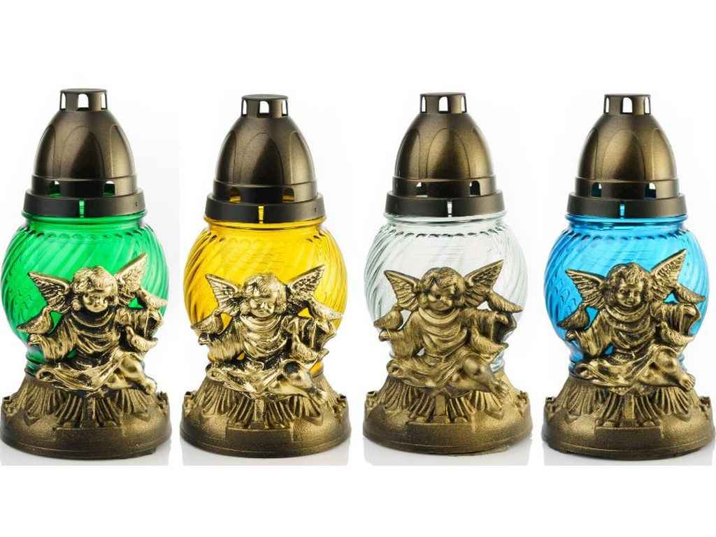 Лампадка скло Янгол з голубами овал мікс 22см (8 шт/уп) 24 години горіння ТМ PRS