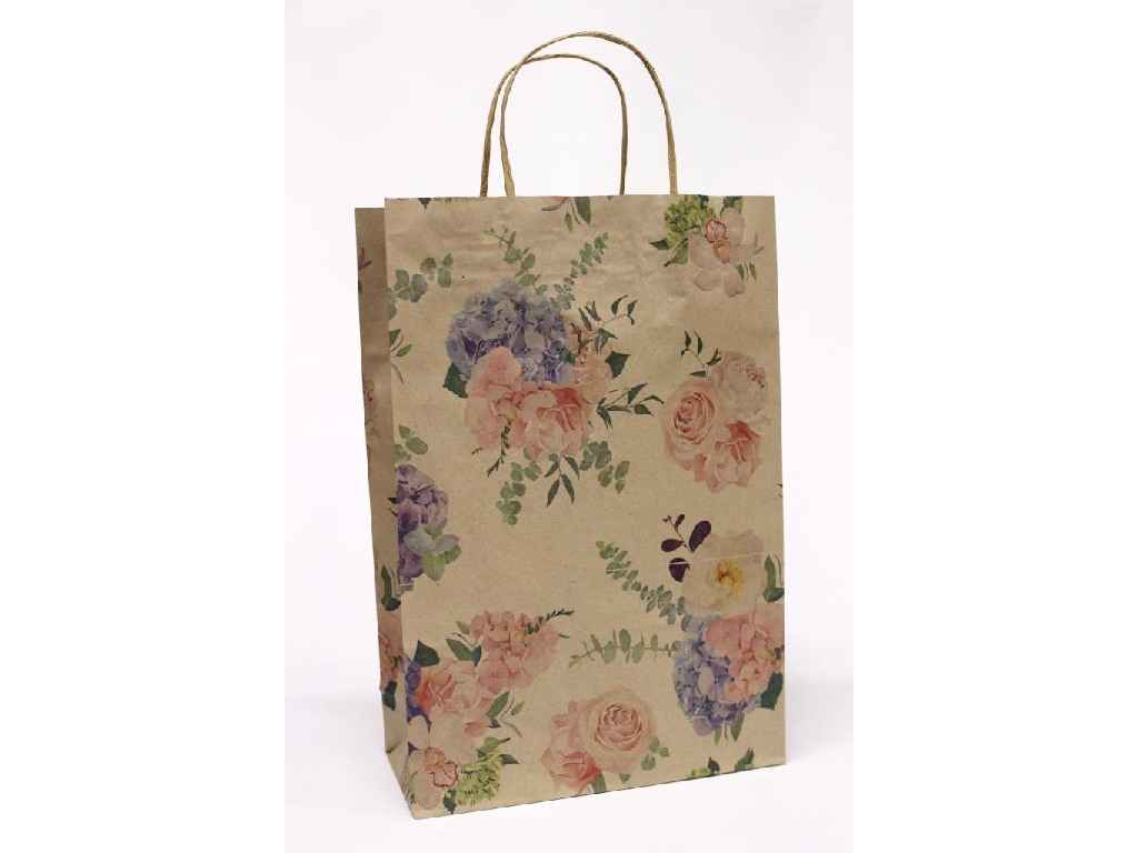 Паперовий подарунковий крафт пакет УП 24 * 37 * 10см - Flowers на бурому