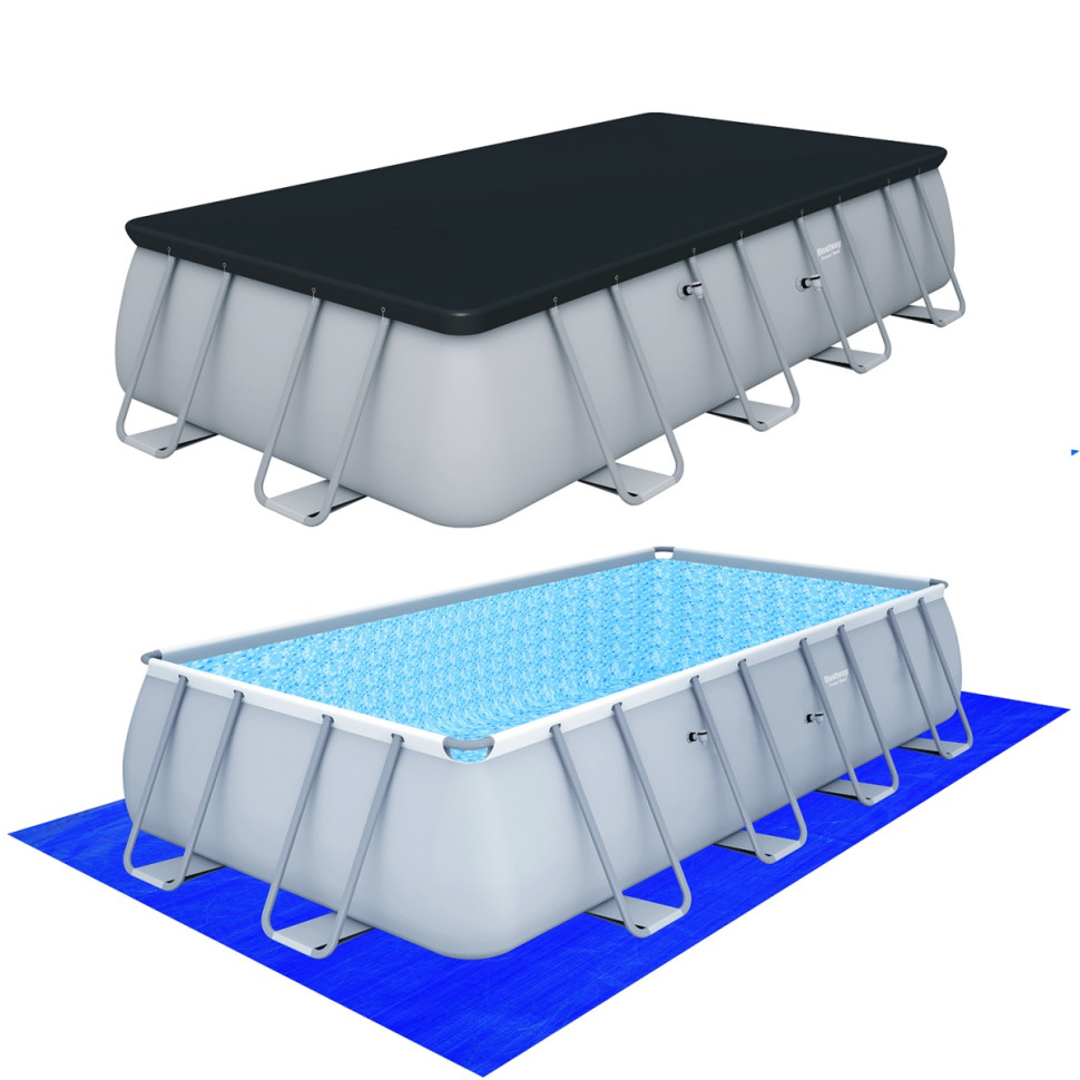 Bestway 56465 каркасний басейн 549 x 274 x 122 см, картріджний фільтр - насос, тент, сходиКлас: каркасний прямокутний басейнРозміри: довжина 549 см, ширина 274 см, висота 122 смОбсяг басейну (90%): 14812 літрівСистема фільтрації: 5678 л/год картриджнаУстановка: тільки наземнаХарактеристики басейну Bestway 56465 :Тип басейну: КаркасніФорма басейнів: ПрямокутніОбсяг басейну (90%): 14 812 лСерія Power SteelТришаровий ПВХ з армірувальної сіткою з поліестеруКлас ПВХ преміальнийПідвищений захист від механічного та впливу UVЗагальна товщина стінок 0.60-0.90 ммМеталевий каркас з антикорозійним покриттямВнутрішня обробка чаші під блакитну мозаїкуСпусковий клапанЗбирається швидко і без інструментівКомплектація Bestway 56465 :Металевий каркасМ'яка чаша басейну ПВХФільтраційна установка Bestway 58389Картридж для фільтрів Bestway 58012 (III)Сходи Bestway 58336Покриття на басейн Bestway 58378Комплект латочокІнструкція