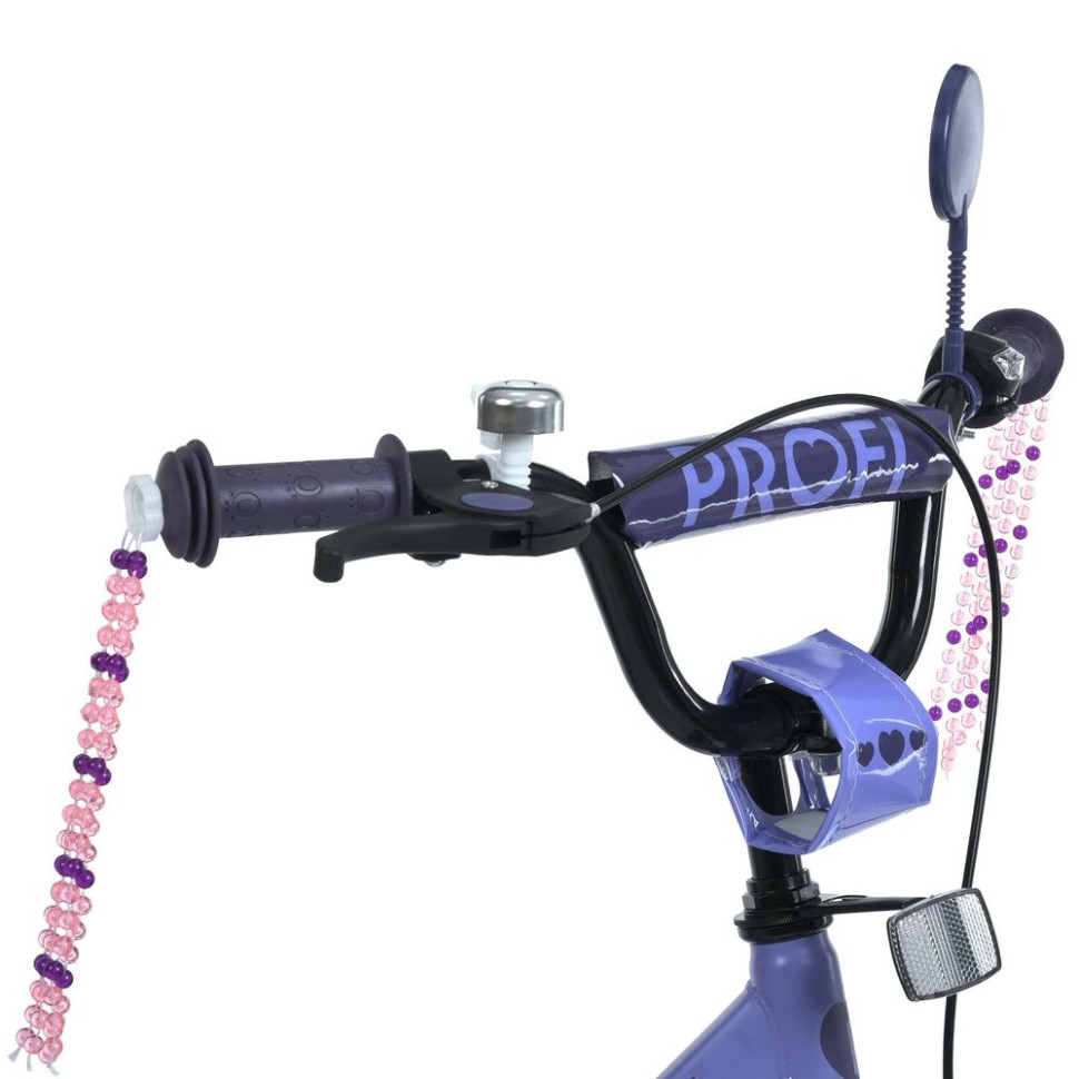 Пориньте у світ чарівних прогулянок і яскравих емоцій разом із велосипедом PROF1 PRINCESS! Ця модель створена спеціально для маленьких леді, які люблять рух, свободу та стиль. Ніжний бузковий колір, плавні форми та продумана комплектація перетворюють звичайну поїздку на подвір'я на справжню пригоду. З таким велосипедом ваша дівчинка відчує себе героїнею улюбленої казки - впевненою, щасливою і помітною на дорозі!Переваги моделі:Розмір коліс: 16 дюймів - оптимальний розмір для дітей віком від 3 до 5 років.Рама: Легка, але міцна, виконана з якісного матеріалу, що забезпечить надійність конструкції.Крила: Захищають від бруду і води, дозволяючи дитині залишатися чистою під час прогулянок.Додаткові аксесуари:Дзвінок: Для безпеки, щоб дитина могла попередити перехожих або інших учасників руху.Ліхтар: Забезпечує додаткову видимість у темний час доби, що робить поїздки безпечнішими.Багажник: Зручний для транспортування дрібних предметів або іграшок.Додаткові колеса: Допомагають дитині освоїти катання, забезпечуючи стабільність і безпеку в процесі навчання.