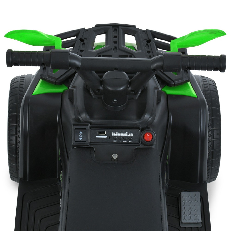 Артикул M 6125EBLRБренд Bambi RacerТип квадроциклРозміри товару довжина 67смширина по дзеркалах/ колесам 41смвисота 50смвага 5,9кгвисота від підлоги до сидіння 33смвисота від підніжки до сидіння 18cмвисота до керма 48смДопустиме навантаження За вагою до 23кгЗа віком від 2 роківМотор Кількість/V/RPM 1*25W / 6V / RPM15000Батарея Кількість/V/AH 6V4,5AHІндикатор батареї +Заряджання V/mA 6V/800mAЧас на зарядку 8-12годІндикатор заряджання +Старт Старт з кнопкиЗвук під час старту +Плавний старт у звичайному режимі +Швидкість км/год 3 км/годКількість швидкостей на панелі/на пульті 3Педаль газу +Педаль-гальмо -Світло Фари ПередніПідсвічування -Кнопка вкл/вимк світла -Звук Музика MP3+USBКарта пам'яті +Сигнал +BLUETOOTH +Управління Пульт керування +App(додаток) -Рух вперед/назад тумблерСидіння кількість місць 1Ремені безпеки -Матеріал екошкіраШирина посадкового місця 15,5смКолеса Матеріал EVAРозмір передніх коліс/дисків 22см / 17смРозмір задніх коліс/дисків 22см / 17смПростий монтаж +Корпус Матеріал ПластикДах -Амортизатори Передні -Задні -Додаткові функції Двері відкр. -Демо-режим -Бат.ручка -Дод. Коліщатка -Кондиціонер -Килимок -Причіп -Захист від падіння +Додаткові елементи Картрідер SD/TF картКОРОБКА Брутто/Розмір 6,8 кг / 67-36-33смКількість шарів 5