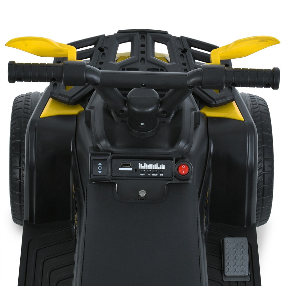 Артикул M 6125EBLRБренд Bambi RacerТип квадроциклРозміри товару довжина 67смширина по дзеркалах/ колесам 41смвисота 50смвага 5,9кгвисота від підлоги до сидіння 33смвисота від підніжки до сидіння 18cмвисота до керма 48смДопустиме навантаження За вагою до 23кгЗа віком від 2 роківМотор Кількість/V/RPM 1*25W / 6V / RPM15000Батарея Кількість/V/AH 6V4,5AHІндикатор батареї +Заряджання V/mA 6V/800mAЧас на зарядку 8-12годІндикатор заряджання +Старт Старт з кнопкиЗвук під час старту +Плавний старт у звичайному режимі +Швидкість км/год 3 км/годКількість швидкостей на панелі/на пульті 3Педаль газу +Педаль-гальмо -Світло Фари ПередніПідсвічування -Кнопка вкл/вимк світла -Звук Музика MP3+USBКарта пам'яті +Сигнал +BLUETOOTH +Управління Пульт керування +App(додаток) -Рух вперед/назад тумблерСидіння кількість місць 1Ремені безпеки -Матеріал екошкіраШирина посадкового місця 15,5смКолеса Матеріал EVAРозмір передніх коліс/дисків 22см / 17смРозмір задніх коліс/дисків 22см / 17смПростий монтаж +Корпус Матеріал ПластикДах -Амортизатори Передні -Задні -Додаткові функції Двері відкр. -Демо-режим -Бат.ручка -Дод. Коліщатка -Кондиціонер -Килимок -Причіп -Захист від падіння +Додаткові елементи Картрідер SD/TF картКОРОБКА Брутто/Розмір 6,8 кг / 67-36-33смКількість шарів 5