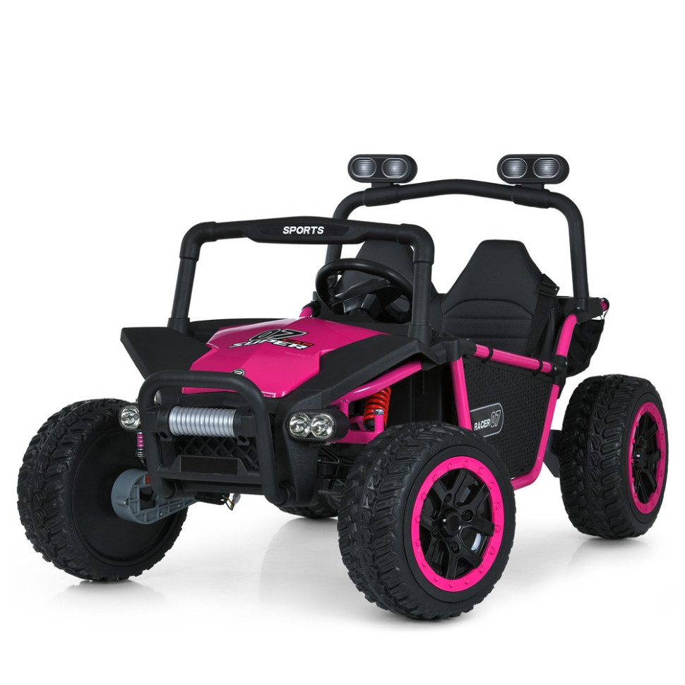 Цей електромобіль — потужний, витривалий і стильний, ідеально підходить для активних прогулянок. Модель оснащена чотирма моторами по 45W і потужним акумулятором 24V 10AH, що забезпечує високу прохідність та тривалий час катання. EVA-колеса м’яко поглинають нерівності, а шкіряне сидіння дарує комфорт. Завдяки MP3, USB та TF-входам, дитина зможе слухати улюблену музику під час подорожі, а LED-підсвітка додасть ефектності.