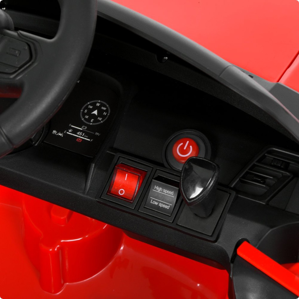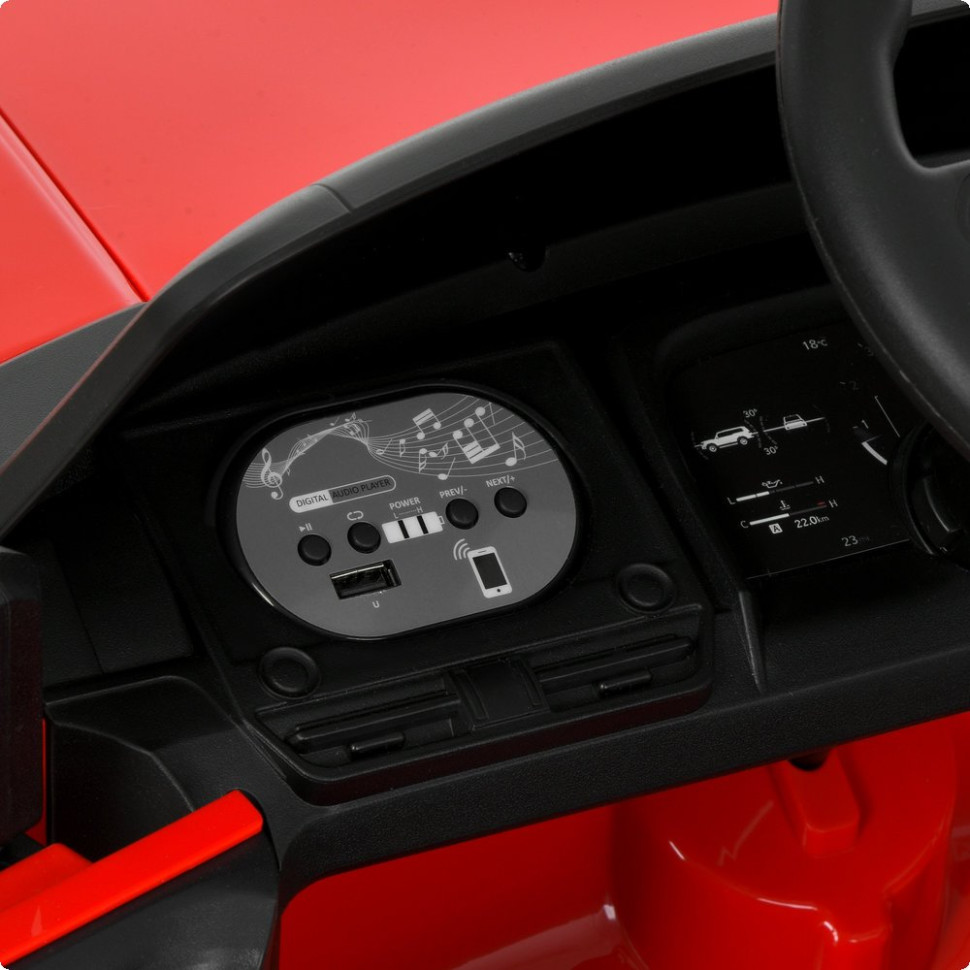 Модель має передні та задні фари з можливістю вмикання, а також вбудовану мультимедійну систему з підтримкою MP3, USB та Bluetooth. Сигнал на кермі додає реалістичності, роблячи поїздки ще більш захопливими.