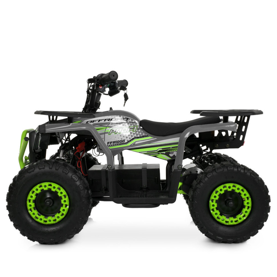 Електричний квадроцикл Prof1 - це надійна та потужна модель, призначена для підлітків від 12 років. Поєднує в собі міцну конструкцію, ефективний двигун і зручне керування, що забезпечує комфортне та безпечне пересування.