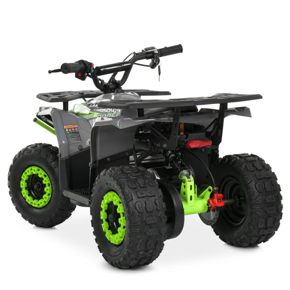 Квадроцикл оснащений безщітковим двигуном потужністю 1000W та акумуляторною системою на 48V, що дозволяє розвивати швидкість до 25 км/год. Передбачено три швидкісні режими, які перемикаються поворотом ключа під сидінням. Запуск здійснюється поворотом ключа, керування - за допомогою ручки газу та кругового перемикача напрямку руху.